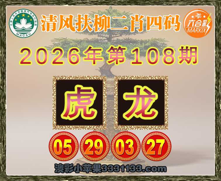 108期:【清风扶柳】 二肖四码【虎龙】【05.29.03.27】开:狗45
