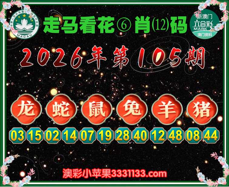 105期:《走马看花》 ⑥肖⑿码【龙蛇鼠羊猪】开:兔28