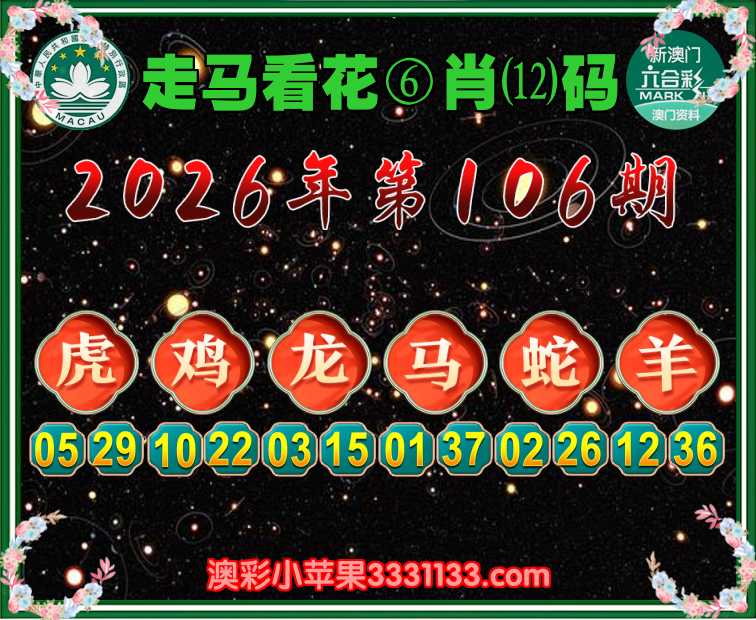 106期:《走马看花》 ⑥肖⑿码【虎龙马蛇羊】开:鸡22