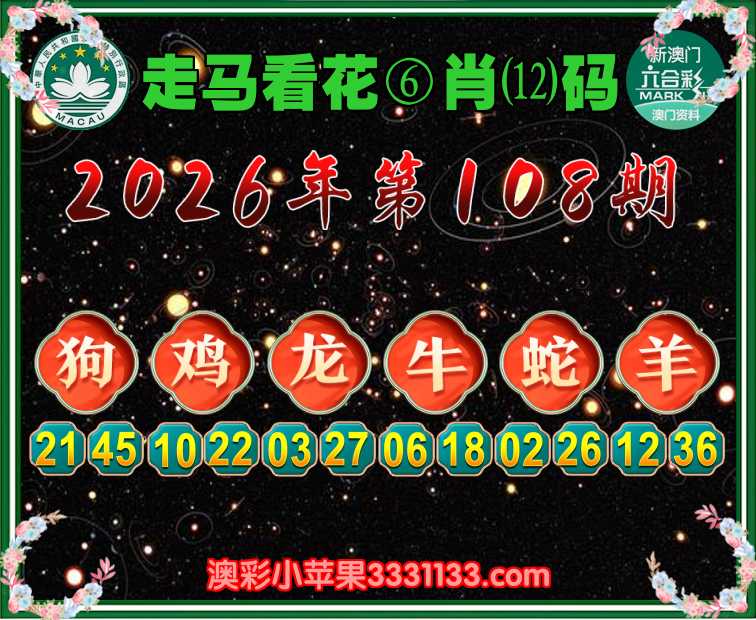 108期:《走马看花》 ⑥肖⑿码鸡龙牛蛇羊】开:狗45