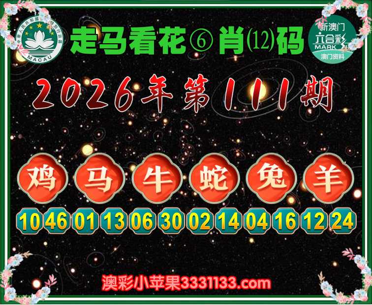 111期:《走马看花》 ⑥肖⑿码【鸡马牛蛇兔羊】开:00准