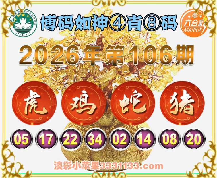 106期:【博码如神】 ④肖⑧码【虎蛇猪】开:鸡22