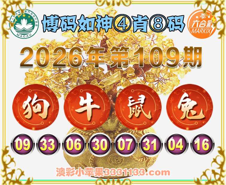 109期:【博码如神】 ④肖⑧码【狗牛鼠】开:兔16准上榜高手