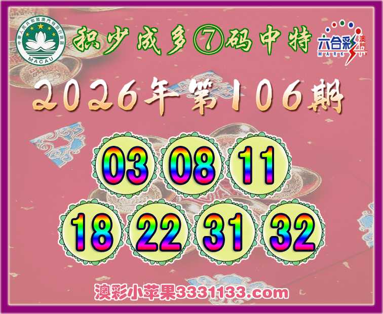 106期: 『积少成多』 ⑦码中特【03.08.11.18.22.31.32】开:22