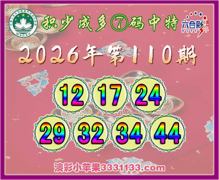 110期: 『积少成多』 ⑦码中特【12.17.24.29.32.34.44】开:30