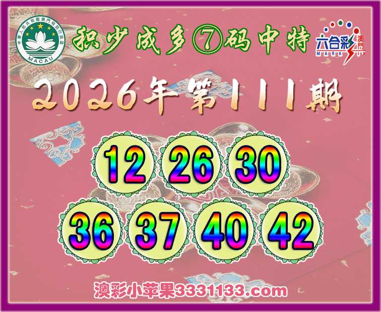 111期: 『积少成多』 ⑦码中特【12.26.30.36.37.40.42】开:00准