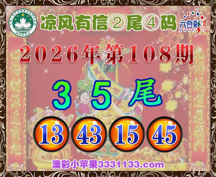 108期:《凉风有信》 ②尾④码【35尾主:13.43.15.45】开:45