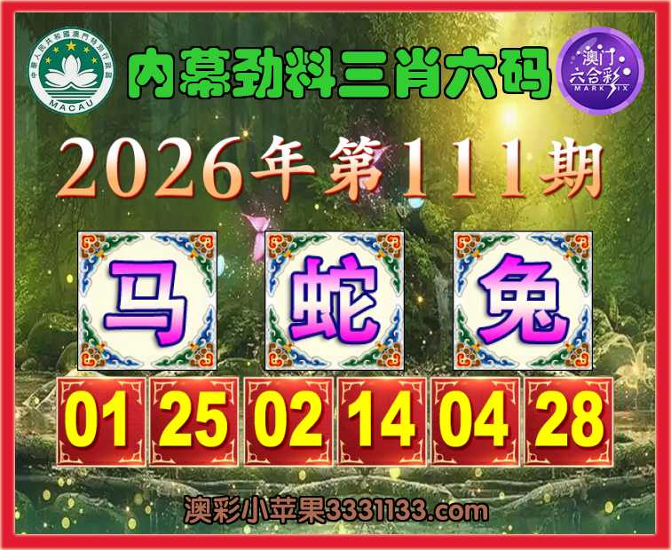 111期:《内幕劲料》 三肖六码【马蛇兔】开:00准