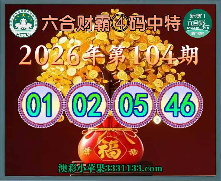 104期:『六合财霸』 ④码中特01.02.05.46】开:01