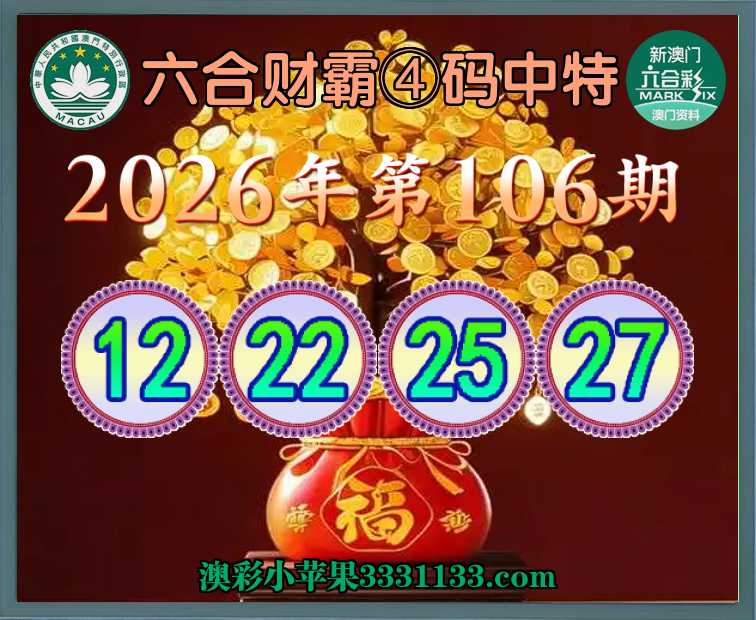 106期:『六合财霸』 ④码中特【12.22.25.27】开:22