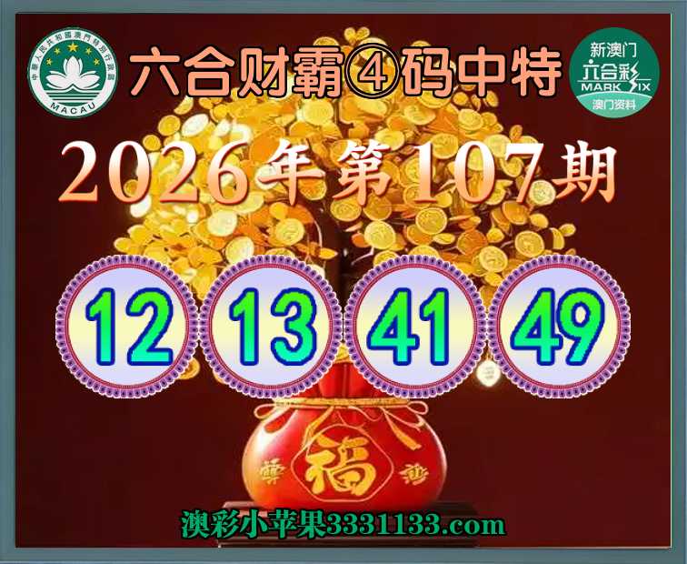 107期:『六合财霸』 ④码中特【12.13.41.49】开:49