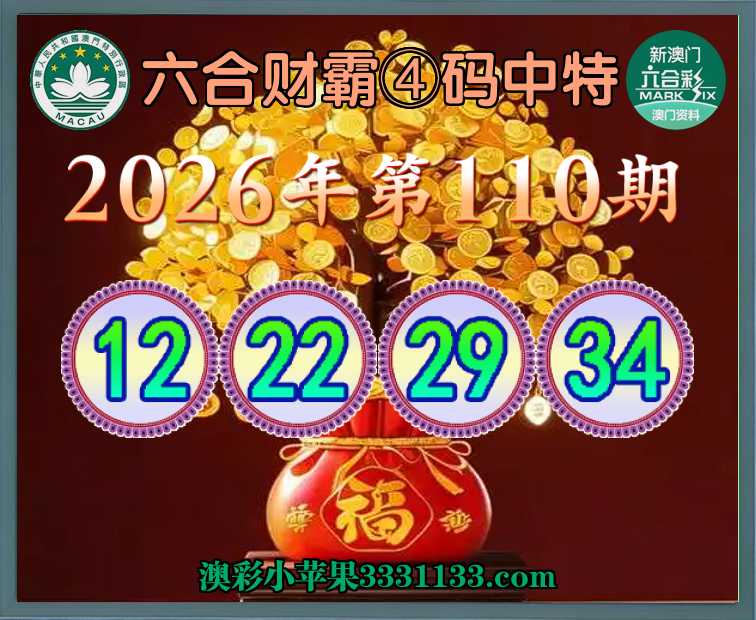 110期:『六合财霸』 ④码中特【12.22.29.34】开:30